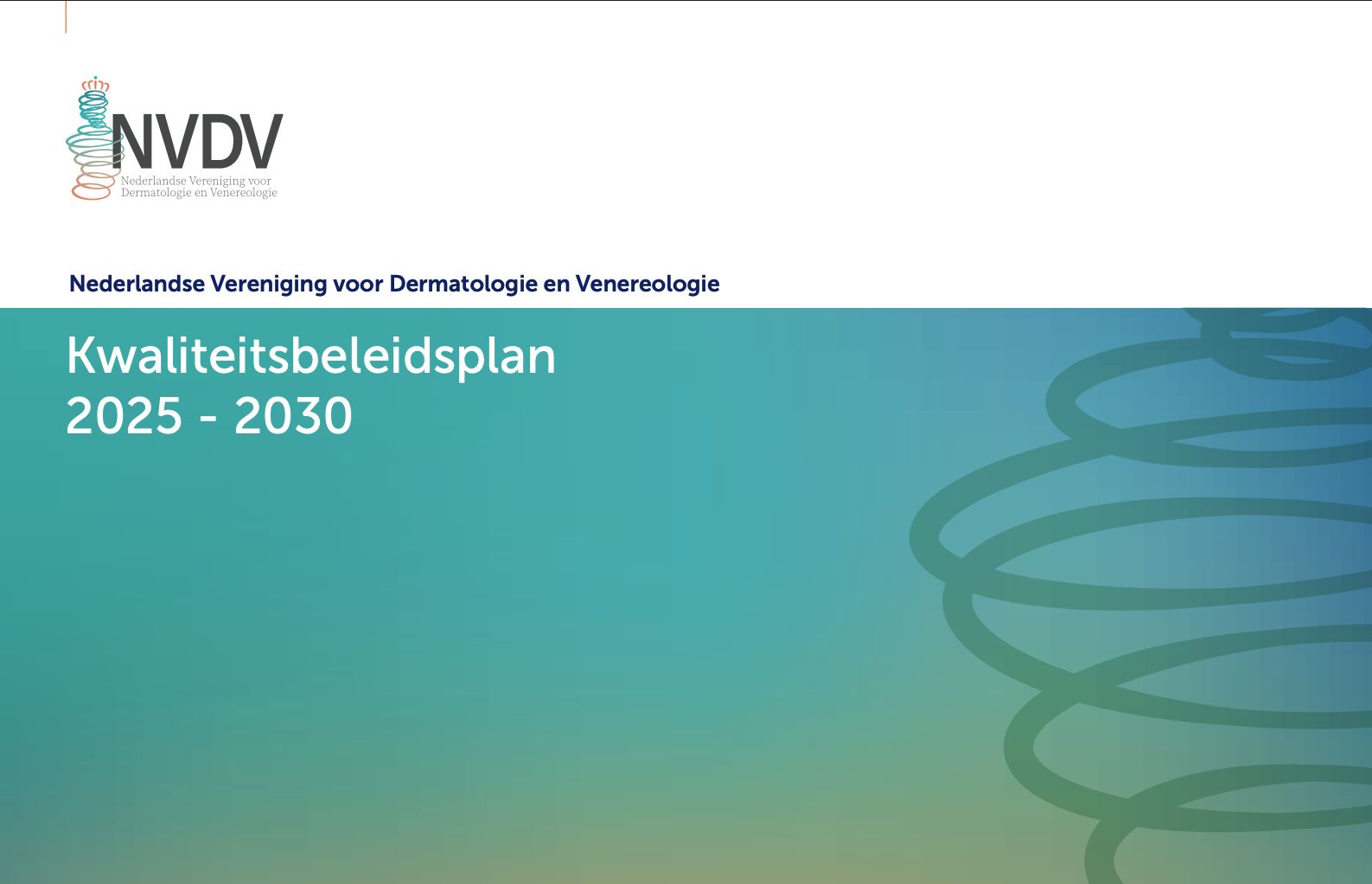De NVDV presenteert haar eerste integrale kwaliteitsbeleidsplan. Hierin staat hoe wij samen werken aan hoogwaardige, veilige en toekomstbestendige dermatologische zorg. Met duidelijke keuzes in richtlijnonderhoud, patiëntinformatie, nascholing, registraties en zorgevaluatie. Het beleid sluit aan bij de bredere ontwikkelingen in de zorg, zoals toegankelijkheid en passende zorg, duurzaamheid en vergroening, digitalisering en nieuwe technologie, diversiteit en inclusiviteit, preventie en leefstijl.